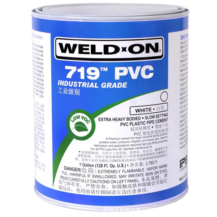 WELD-ON 719可用于所有I型和II型PVC塑料管,由于它的填充性能這種溶劑粘膠適合用于制造PVC管件(特別是大口徑),同時(shí)它的慢速干化時(shí)間非常適合在炎熱的天氣下粘接大口徑管道。并適用于飲用水加壓系統、灌溉、草場(chǎng)、導線(xiàn)管、下水道、排水管、排污和